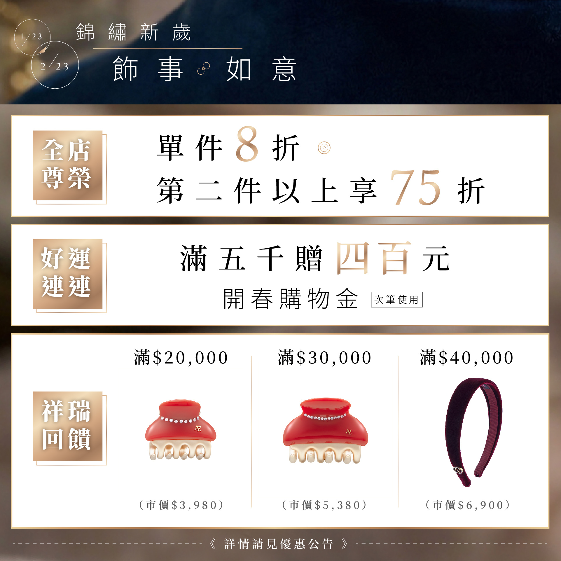 錦繡新歲 ‧ 飾事如意 1/23-2/23 活動說明:1.【正價商品優惠】:
