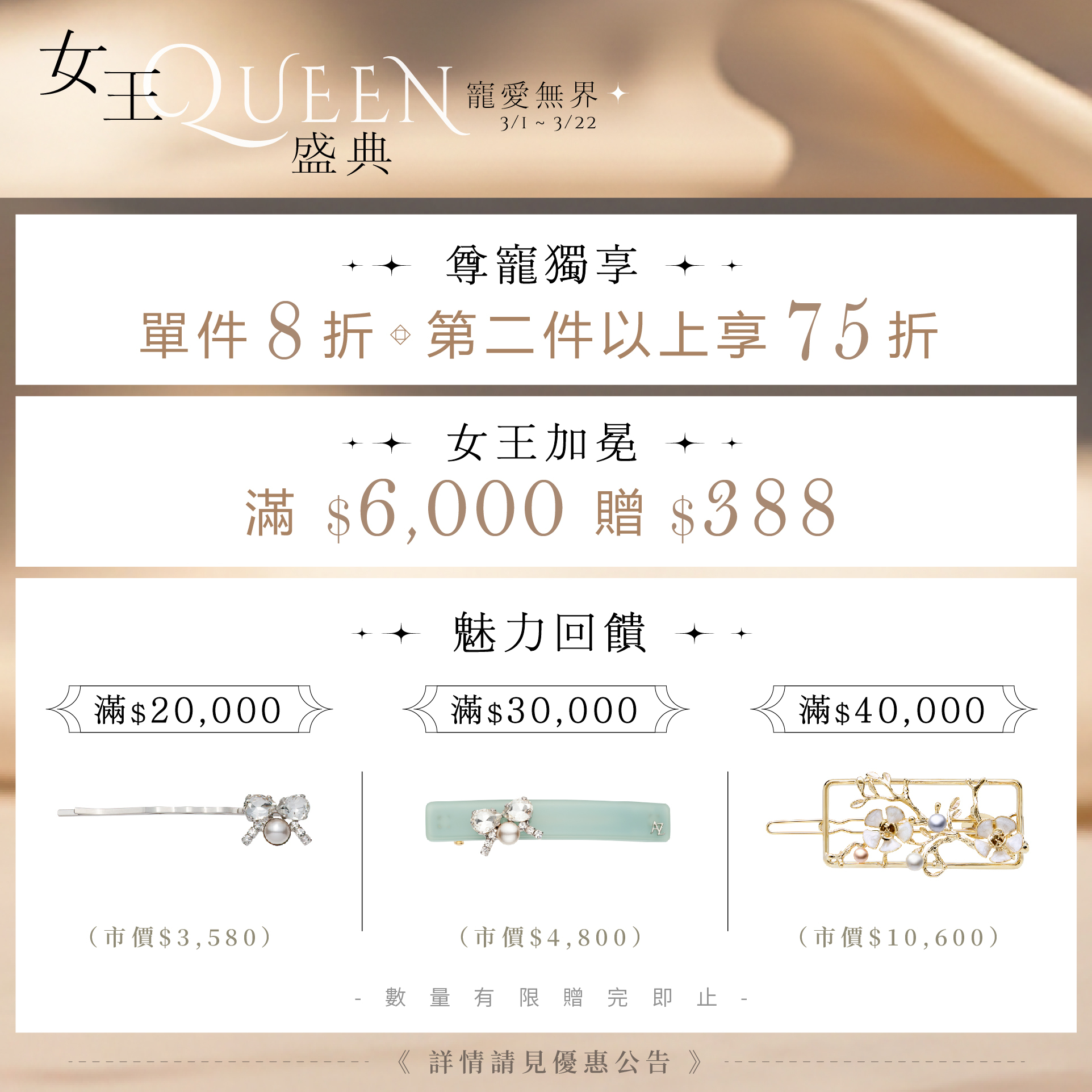 ・滿三萬|贈 $4,800 珠寶髮夾