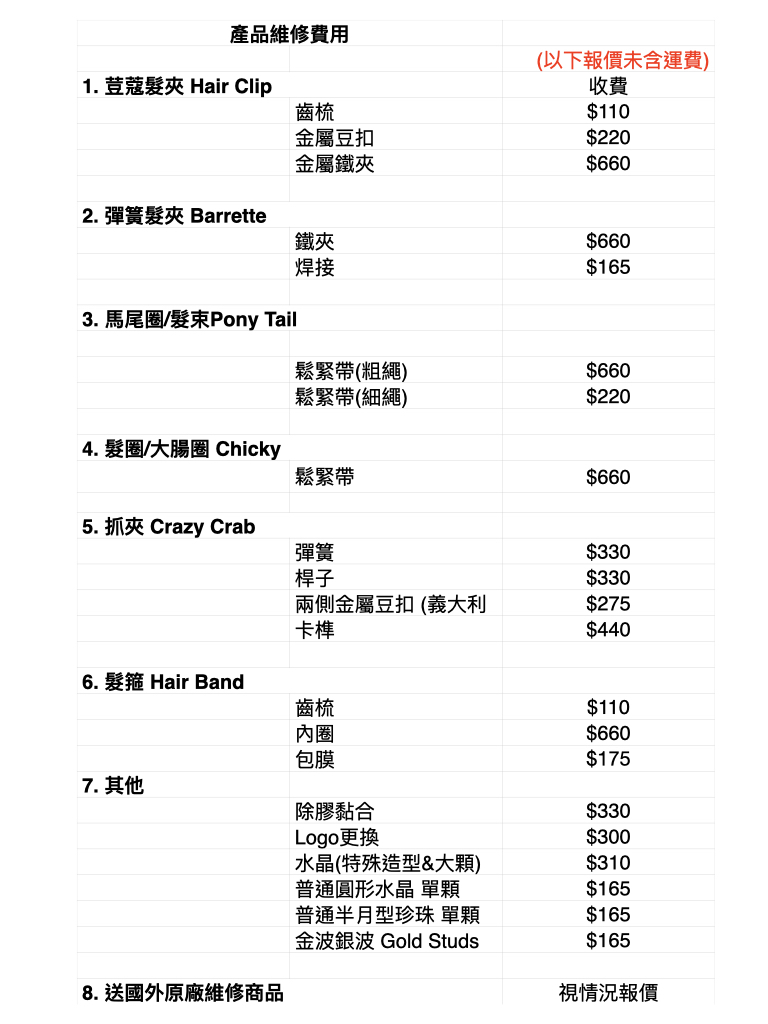 維修運費包含兩段物流費用:一段是我們將商品寄送給維修師傅,另一段則是修復後再寄回給您。請注意,商品並非在您寄來的地點就地維修,而是需轉送至專業師傅處處理。此外,不論您寄來的是小抓夾或大型髮帽,為了簡化流程與方便管理,本賣場統一收取 70 元運費,感謝您的理解與配合。
